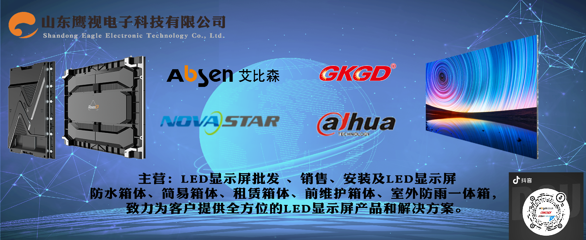 山東鷹視電子科技有限公司成立于2006年,是一家私營(yíng)獨(dú)資企業(yè),注冊(cè)資本1000萬(wàn),代理品牌:艾比森、高科、諾瓦星云和大華,公司設(shè)立臨沂總部、濟(jì)南分公司、河北分公司和箱體生產(chǎn)廠。公司總部坐落在江北最大物流城,又是中國(guó)第二大批發(fā)市場(chǎng)山東臨沂,其地理位置優(yōu)越,交通便利,公司建筑面積5000多平方,員工80余人,擁有完善的售前,售后服務(wù)體系,公司業(yè)務(wù)遍及山東省內(nèi)各地級(jí)市。自有箱體生產(chǎn)廠,專(zhuān)業(yè)從事顯示屏箱體生產(chǎn),自產(chǎn)自銷(xiāo),規(guī)格齊全,包括LED顯示屏防水箱體、簡(jiǎn)易箱體、租賃箱體、前維護(hù)箱體、室外防雨一體箱,生產(chǎn)設(shè)計(jì)免焊易結(jié)構(gòu),使安裝更簡(jiǎn)潔高效,致力為客戶(hù)提供全方位的LED顯示屏產(chǎn)品和解決方案。鷹視人員堅(jiān)守“誠(chéng)信 感恩 負(fù)責(zé)任”的核心價(jià)值觀,秉承“謙卑 忠誠(chéng) 協(xié)作 擔(dān)當(dāng) 積極主動(dòng) 堅(jiān)韌不拔”的企業(yè)精神,始終以精誠(chéng)團(tuán)結(jié)、追求卓越、為客戶(hù)提供優(yōu)質(zhì)產(chǎn)品和專(zhuān)業(yè)服務(wù)。 .